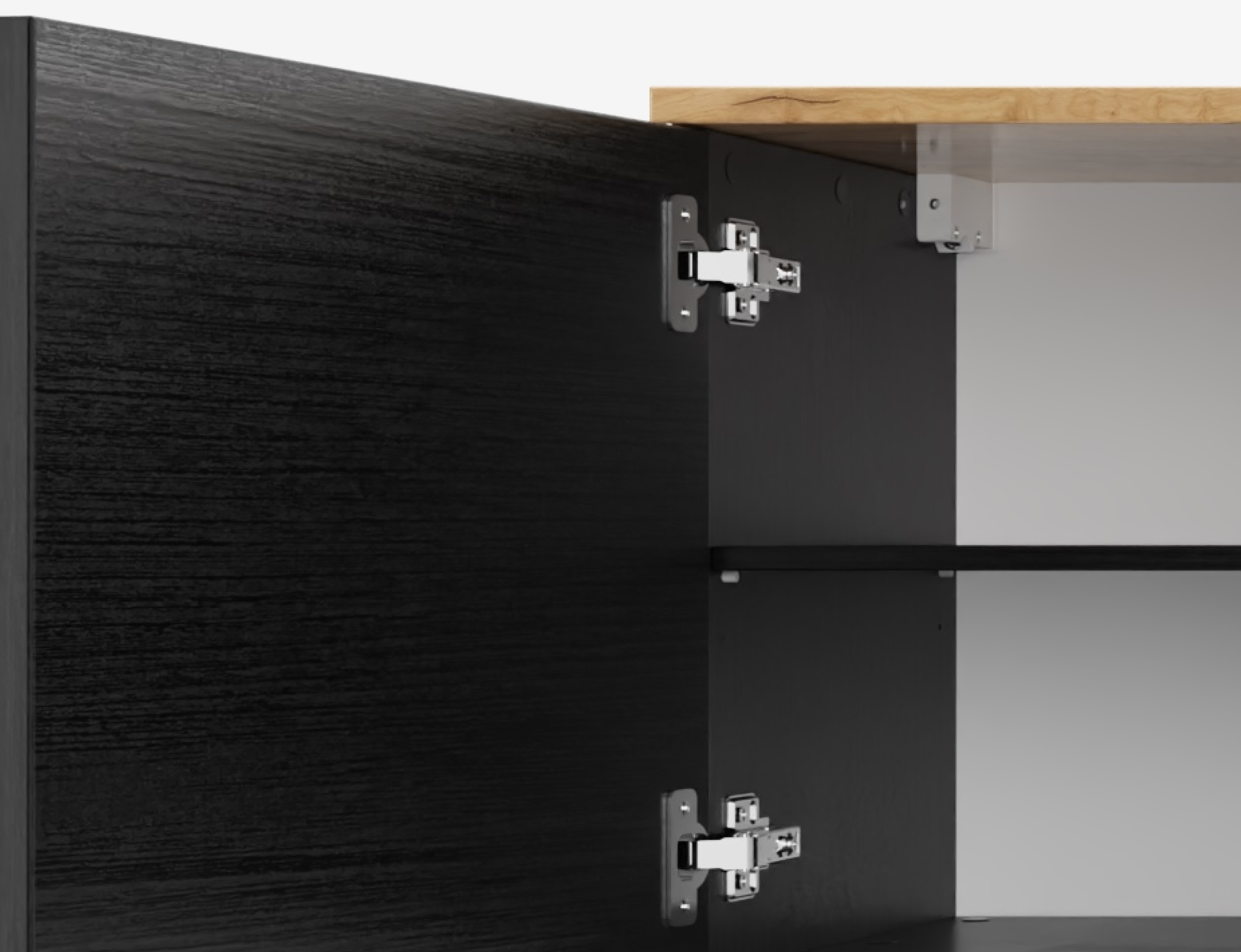 - La tabla central tiene altura regulable. Aprovecha al máximo el espacio dentro del mueble y crea un hogar limpio y ordenado.